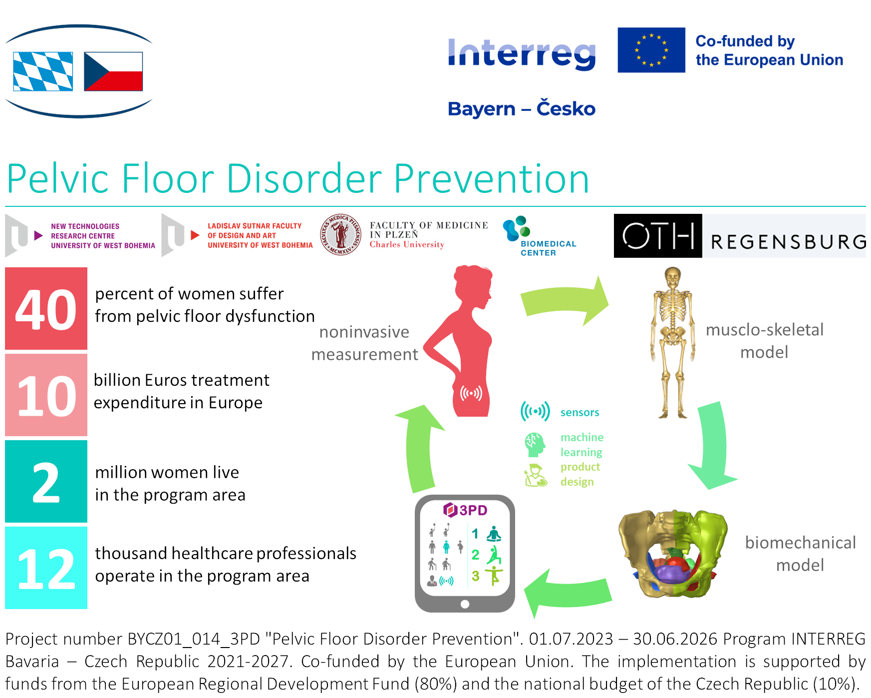 The Bavarian-Czech border region suffers from an uneven distribution of medical and therapeutic care concentrated in large cities. Different procedures and standards of care in both regions require cross-border cooperation of an interdisciplinary team of doctors, therapists, engineers and designers in the field of healthcare. The project aims to increase awareness and develop personalized and effective prevention of pelvic floor disorders, which up to 40% of women will encounter during their lifetime. The project primarily focuses on healthy women aged 18–45. Other target groups include students of medicine, healthcare studies and industrial design, teachers and educators, physiotherapists and gynecologists, research and educational organizations and small and medium-sized enterprises. The goal of the project is the development and implementation of a modular non-invasive system for the prevention of pelvic floor disorders in order to improve individual quality of life and reduce the burden on the healthcare system. The developed technology will be presented to the target groups as a functional prototype.